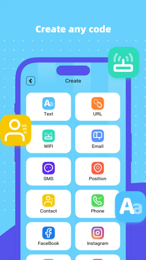 - Create various QR codes or Barcode, long press the QR code, edit it into your favorite style, such as add gif watermark photo