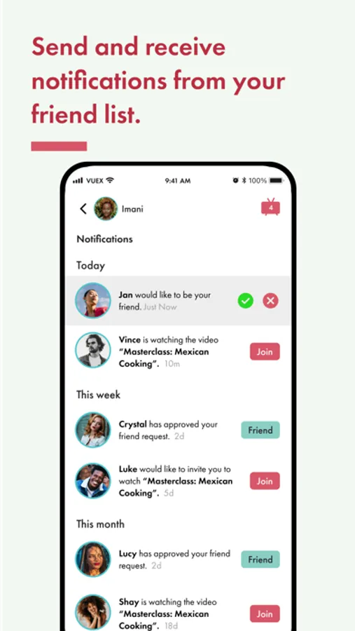 - Send & receive notifications when your friends invite you to watch content just tap & join!