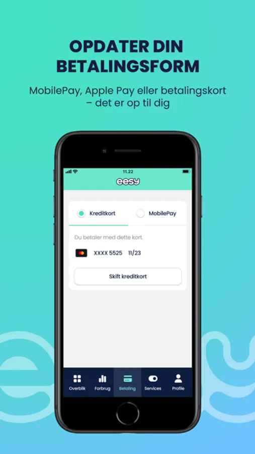 - Opdater betalingsform (Vælg MobilePay, ApplePay eller betalingskort – det er op til dig).