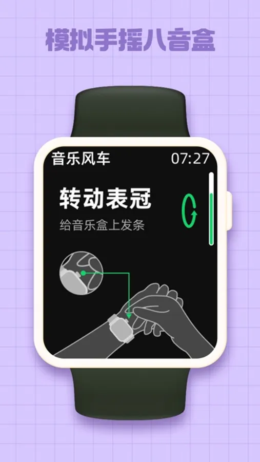 转动表冠,给音乐盒拧上发条,开启八音盒梦幻之旅