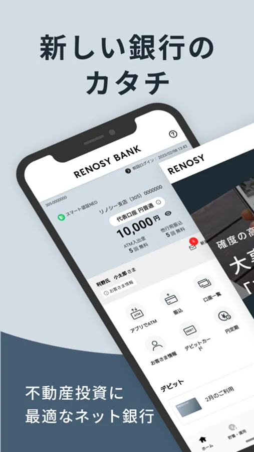 RENOSY BANKとは不動産×金融×テクノロジーのサービス実現を目指した新しいカタチの銀行口座です。不動産をはじめ多くの保有資産を一括管理することができるGAテクノロジーズのWEBサイトにRENOSY BANKから遷移することもできます。