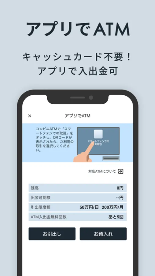 ◆キャッシュカード不要で入出金できる「アプリでATM」