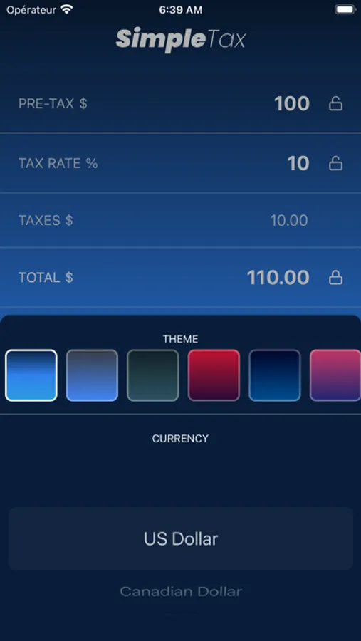 You can customize the application with color themes and choosing the currency which will automatically adapt the rounded calculated values