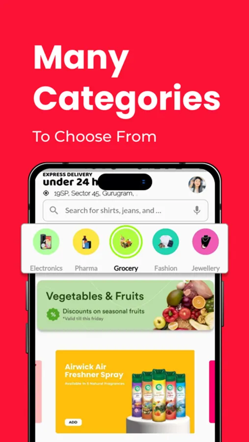 Get instant delivery of Grocery, Electronics, Fashion, Cosmetics Medicines and all Items & more in from One24.