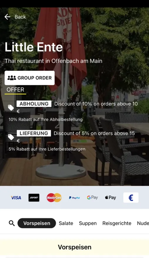 Mit der Little Ente Offenbach Mobile App können leckeres Gericht bequem von zu Hause aus genießen. Stöbern Sie in unserer Speisekarte, wählen Sie die Gerichte aus, die Ihnen schmecken, und geben Sie Ihre Bestellung in Sekundenschnelle auf.