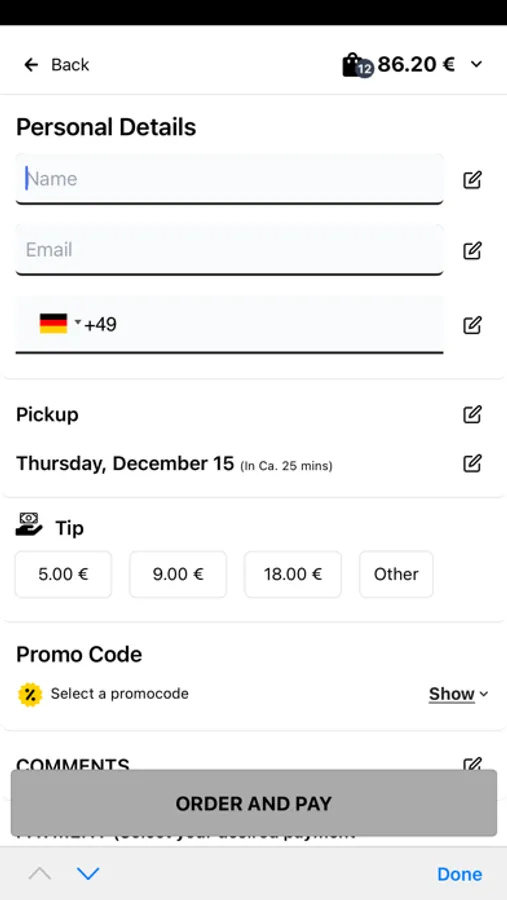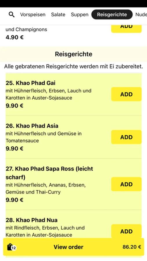 - Durchsuchen Sie die Speisekarte des Restaurants und sehen Sie sich alle anpassbaren Optionen im Voraus an