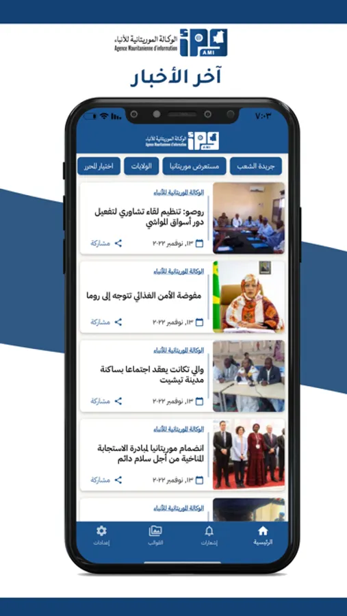 وفي مجال الخدمات الإخبارية، اعتمدت الوكالة أحدث أنظمة التحرير والنشر واستحدثت المزيد من الخدمات الجديدة كخدمات البث الحي ونشر الأخبار والتقارير المصورة عبر الوسائط السمعية البصرية ومنصات التواصل الاجتماعي، إضافة إلى خدماتها المعهودة عبر الرسائل النصية القصيرة “sms”، وموقعها الالكتروني ami.mr .