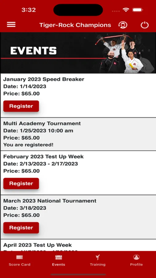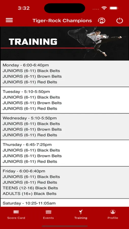 Tiger-Rock App is the mobile app for Tiger-Rock Martial Arts digital academy management software. Parents and students can view their training schedule, register for events, check their scorecard, update billing, and more.