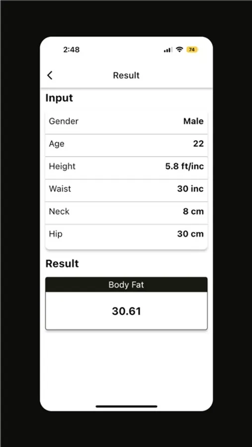 You can easily find dozens of apps to count body fats. But this app is designed for army males and male persons to stay up-to-date about the fat in their body with the easy-to-use design of this calculator. We hope after using this app, you can easily maintain your body shape by managing your daily fats provided by this calculator.