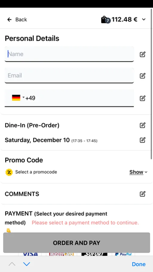 - Durchsuchen Sie die Speisekarte des Restaurants und sehen Sie sich alle anpassbaren Optionen im Voraus an