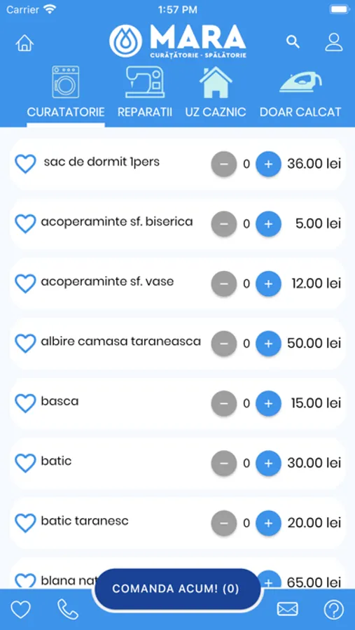 Un concept 100% românesc pentru spălătorii – curățătorii ecologice. Direct din aplicație ai acces la lista de prețuri si servicii , poți chema “rufa-mașina” pentru colectarea articolelor , selectarea cantității și a serviciului dorit , selctarea adresei pentru preluare-livrare și efectuarea plății online.
