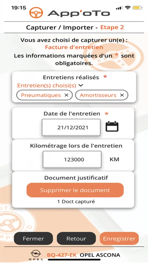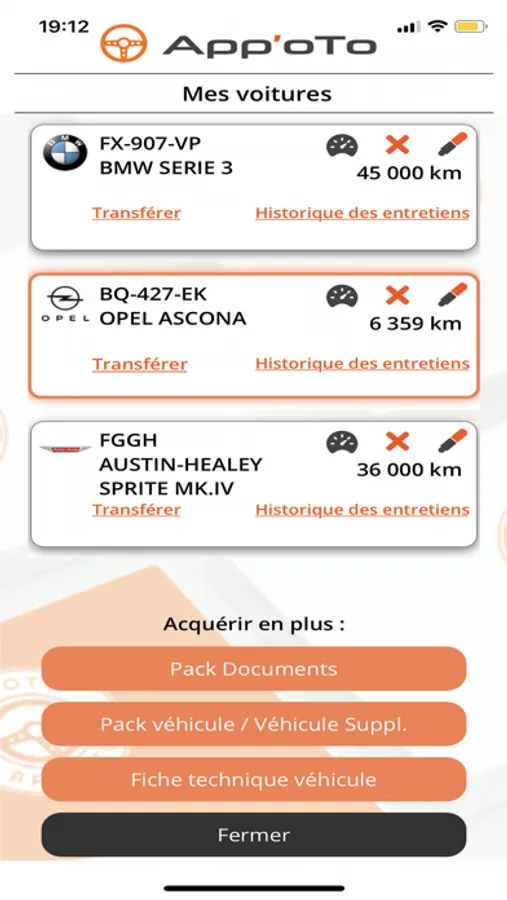 In addition to the possibility of archiving your various administrative documents (registration certificate, insurance certificate, technical inspection) as well as all your maintenance and repair invoices, AppOto automatically generates your own digital maintenance tracking book , the latter being transferable to a possible future buyer via the "sponsorship" feature: you value your interviews.
