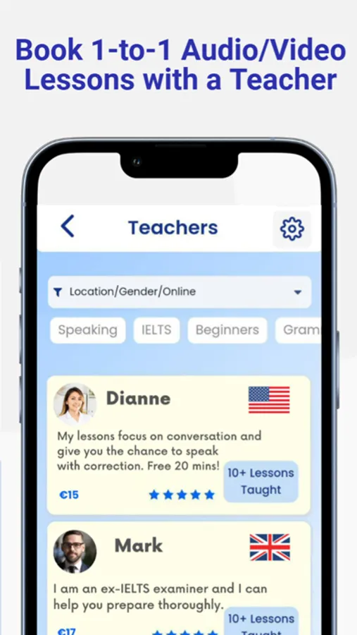 Book a free 20 min trial and practice speaking English today! Live 1-to-1 video/audio lessons with native English teachers from around the world. Lessons include: