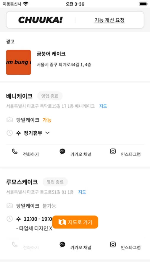 - ‘지도’ 버튼 하나로 가게 주소를 확인하고 방문하세요.