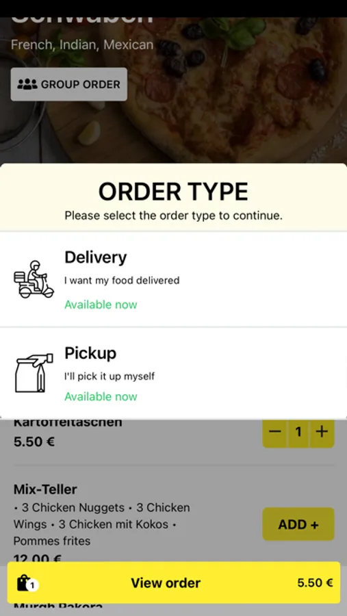 - Durchsuchen Sie die Speisekarte des Restaurants und sehen Sie sich alle anpassbaren Optionen im Voraus an