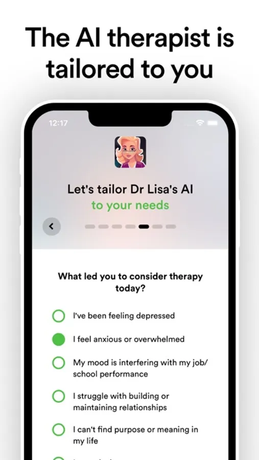 AI Mental Health Therapist - Dr Lisa helps to overcome depression, anxiety, stress, sleep, and many other issues.