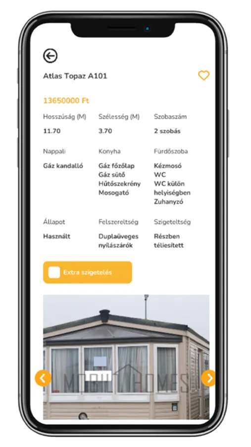 Alkalmazásunk a Mobil-Homes Kft. telephelyén kiállított és további online megtalálható mobilházak leírásaiknak megtekintésére ad lehetőséget. Az AR technológiát kihasználva az eszközét a markerre irányítva megtekintheti a termékeket és azok adatait. Ha egy mobilházat szeretne a későbbiekben megnézni, lehetősége van a gyors elérés érdekében a kedvencek kosárba menteni. Továbbá az alkalmazás segítségével egyszerűen felveheti a kapcsolatot a Mobil-Homes Kft.-vel.
