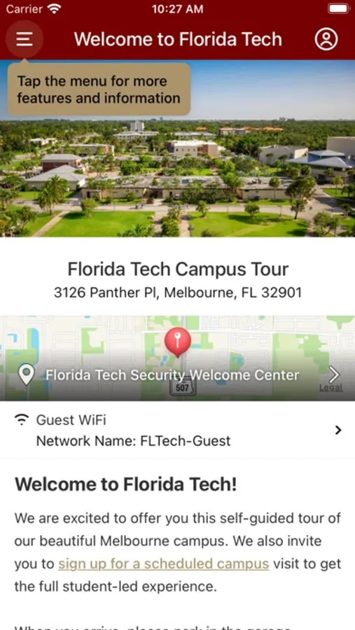 This is Florida Institute of Technology's (Florida Tech's) official self-guided walking tour app. It will take you stop-by-stop through the Florida Tech campus, providing descriptions of all the major spaces and buildings used by current students.