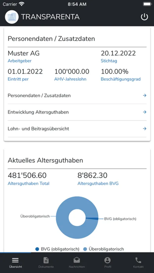 Mit der App-Version von «TRANSPARENTA-Online» können unsere Versicherten direkt und selbständig auf ihr persönliches Versichertenkonto zugreifen, Simulationen und Abfragen durchführen sowie verschlüsselt Nachrichten und Dokumente mit TRANSPARENTA austauschen.