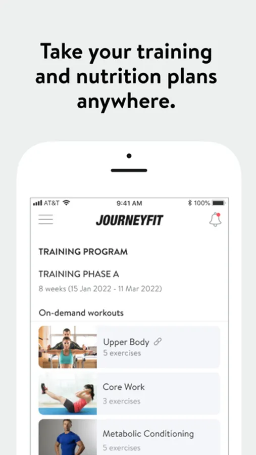 With the JOURNEYFIT Coaching App, you will have access to workout programs designed specifically to help you reach your fitness and health goals! You can follow & track your workouts, your nutrition, your lifestyle habits, measurements and results–all with the help of your coach.