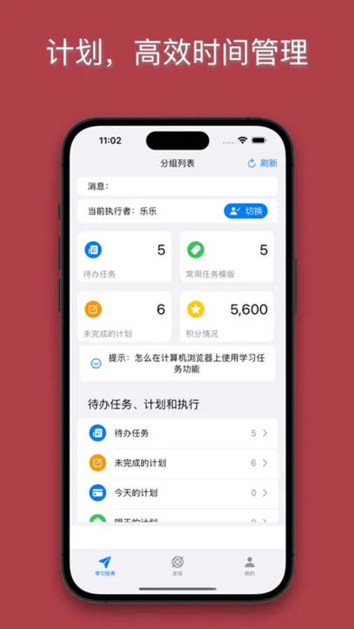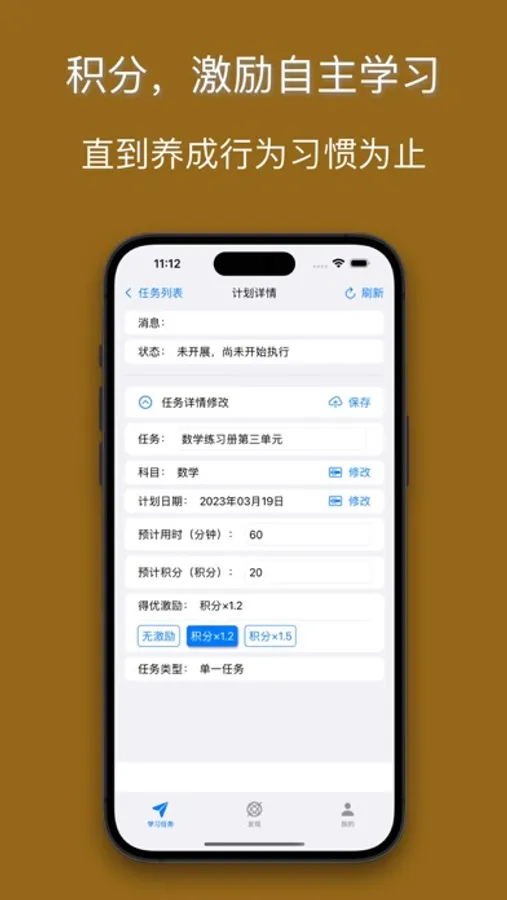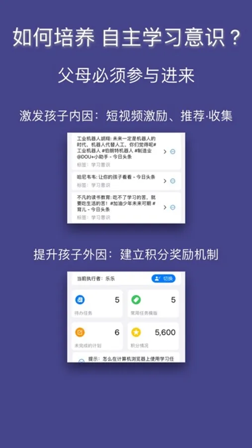 1、【辅导孩子管理学习计划】支持父母协同的学习任务(计划)管理、执行监督、激励,积分、愿望清单。