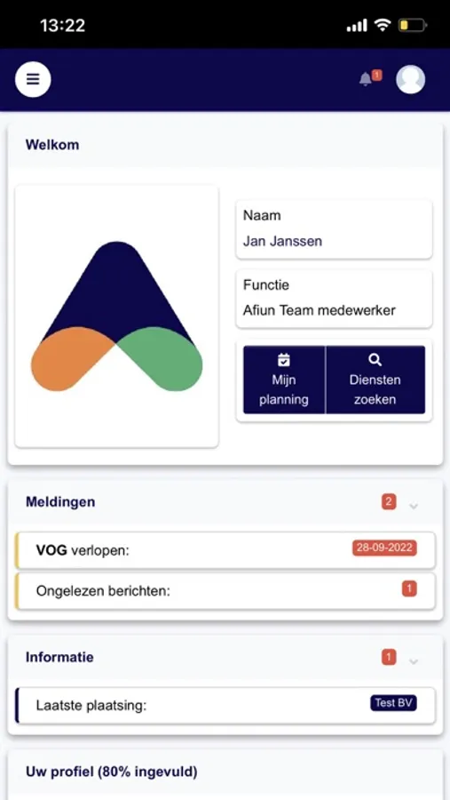 Via de app houd je eenvoudig je gewerkte uren in de gaten en bouw je aan je eigen profiel.