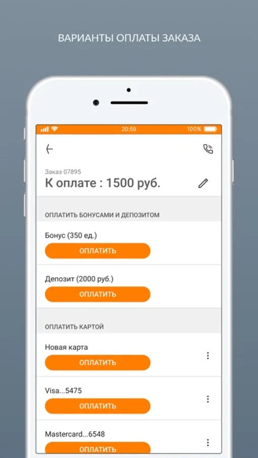- оплатить заказы банковской картой, бонусами или депозитом;