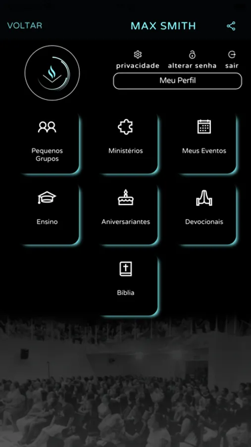 * No item Meu Perfil é possível atualizar seus dados cadastrais na Igreja;