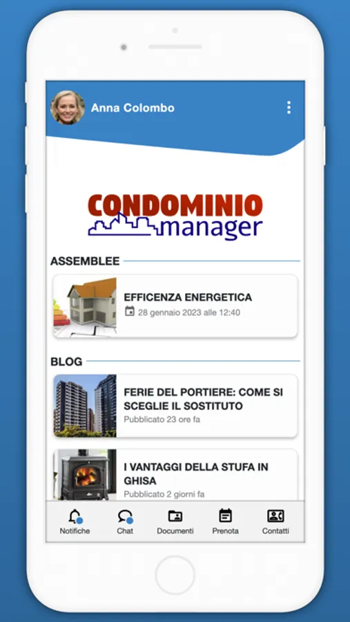 Registrati inserendo il codice che ti ha dato l'amministratore di condominio e utilizza l'app Condominio Manager per: