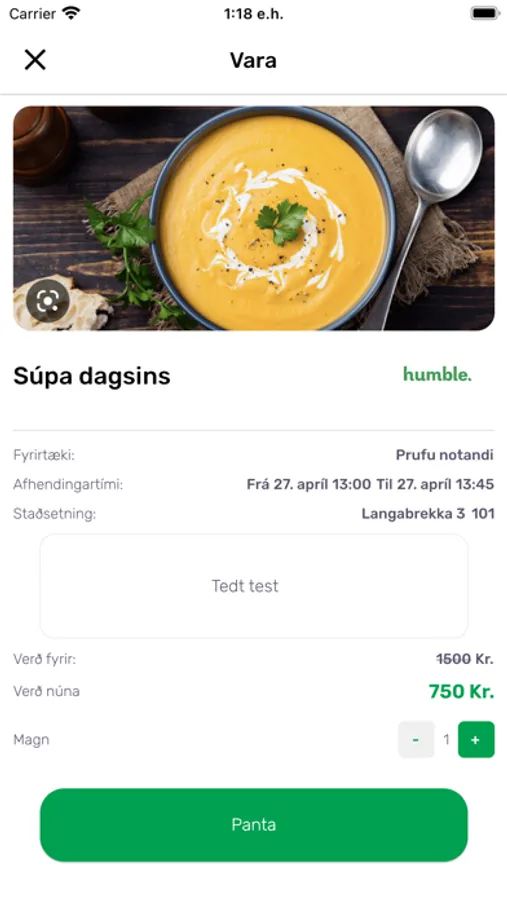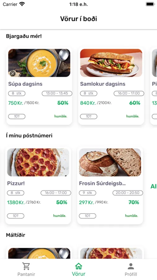 Hægt er að sjá úrval af mat sem fyrirtæki setja inn ásamt því að greiða fyrir matinn í gegnum Aur.