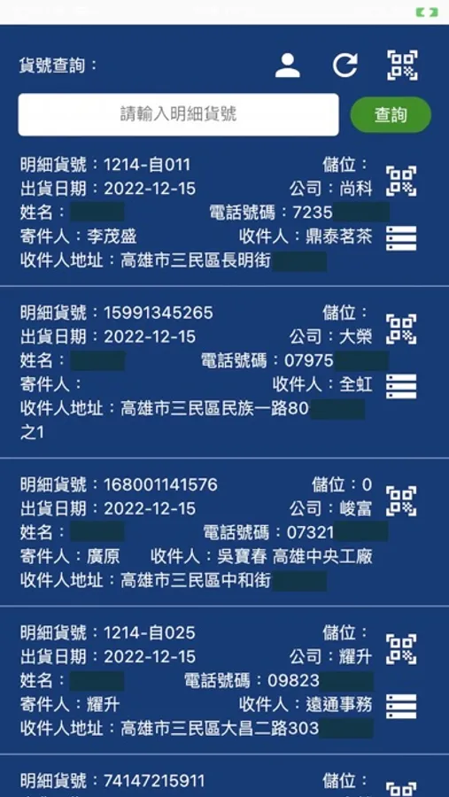 掃Barcode查詢貨物內容