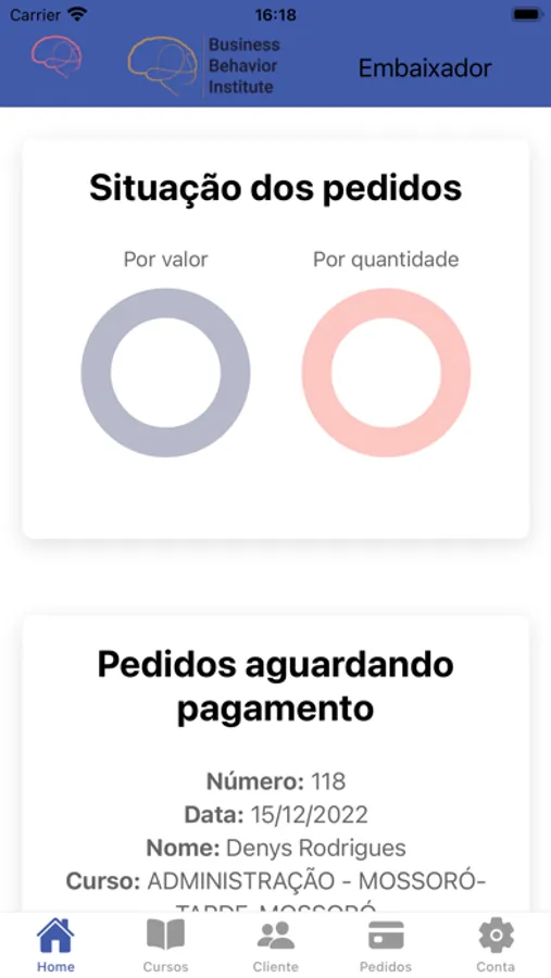 O aplicativo permite gerenciar todos os cadastros dos alunos do embaixador e gerar pedidos de matrícula.