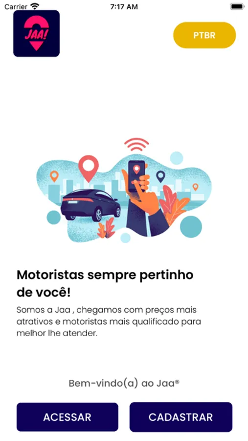 CORRIDAS: Estamos aqui para oferecer uma viagem tranquila, agradável e segura aos nossos usuários, prezamos pela eficiência no atendimento e bem-estar dos clientes. Com o Jaa!, você se livra do estresse do trânsito. Em poucos cliques você consegue um meio de transporte seguro, rápido e super em conta. Chega de procurar por uma vaga para estacionar, de perder tempo esperando por ônibus.