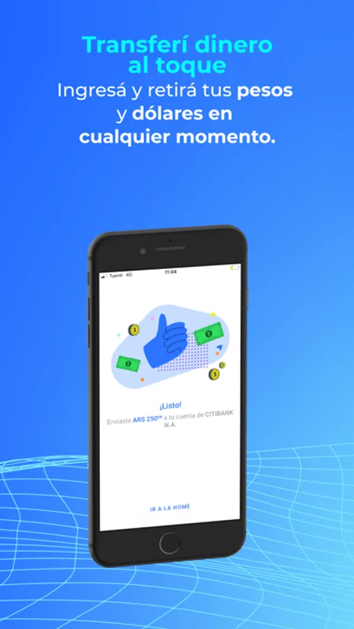 * Transferir dinero al toque. Ingresá y retirá tus pesos y/o dólares en cualquier momento.