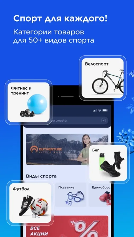 Скачивайте наше приложение и получайте весь магазин Sportmaster в вашем смартфоне!