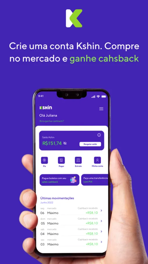 O Kshin é um app feito para quem faz compra em supermercado e gosta de economizar. Você ganha cashback comprando produtos selecionados, é só escolher e passar no caixa e o dinheiro cai na hora no app.