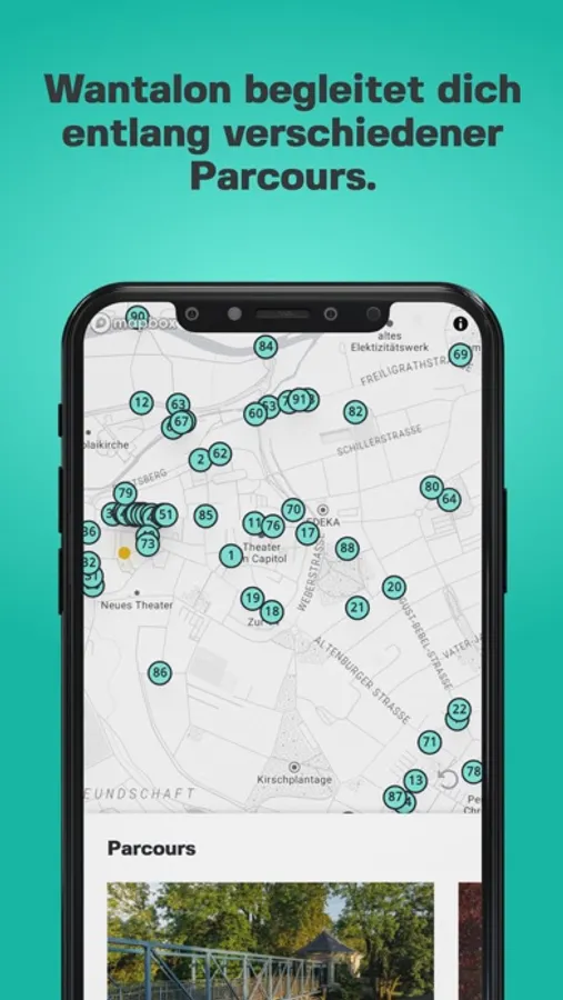 Erlebe die Stadt aus einem neuen Blickwinkel. Wantalon hat seinen Wortstamm im Althochdeutschen und bedeutet wandeln, bewegen, sich verändern. Als App ist Wantalon Mittlerin zwischen öffentlichen Raum und Kunst und macht die Stadt zur großflächigen Galerie. Sie nimmt die Nutzer*innen an die Hand und wandelt mit ihnen durch die Stadt.