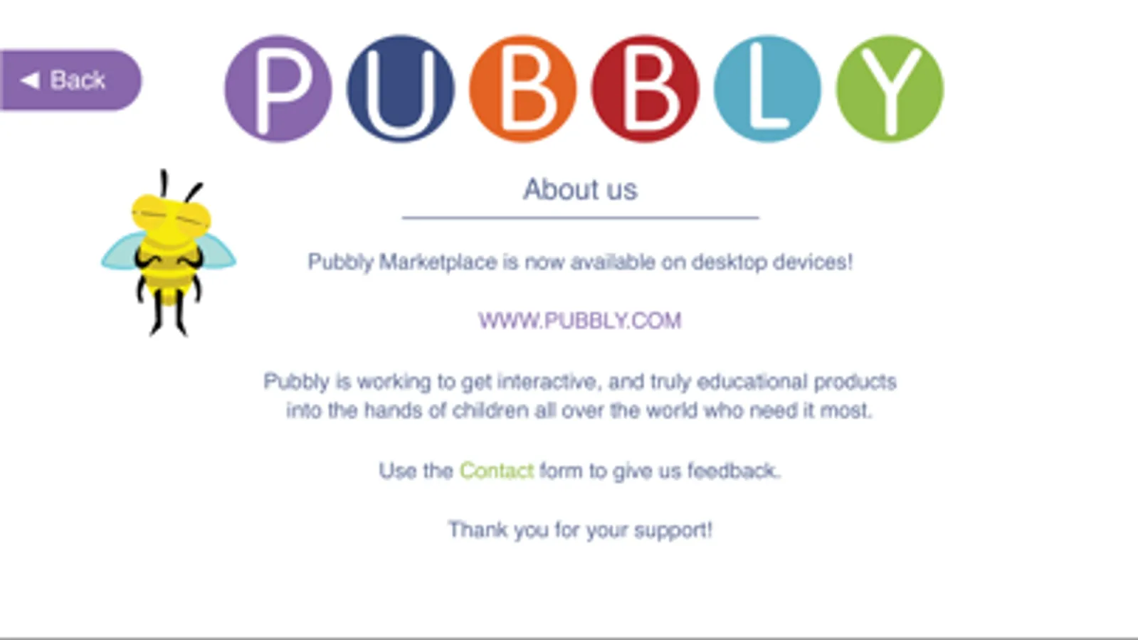 The PUBBLY Player App includes read-aloud books with animation and interactions for young learners and readers. Material is sorted by age appropriateness from ages 4-8 years old. Children are free to explore all the material offered in the app. Educational games allow for practicing English and Math concepts. Programs for Math, Reading, and Science samples have Spanish support on each page.