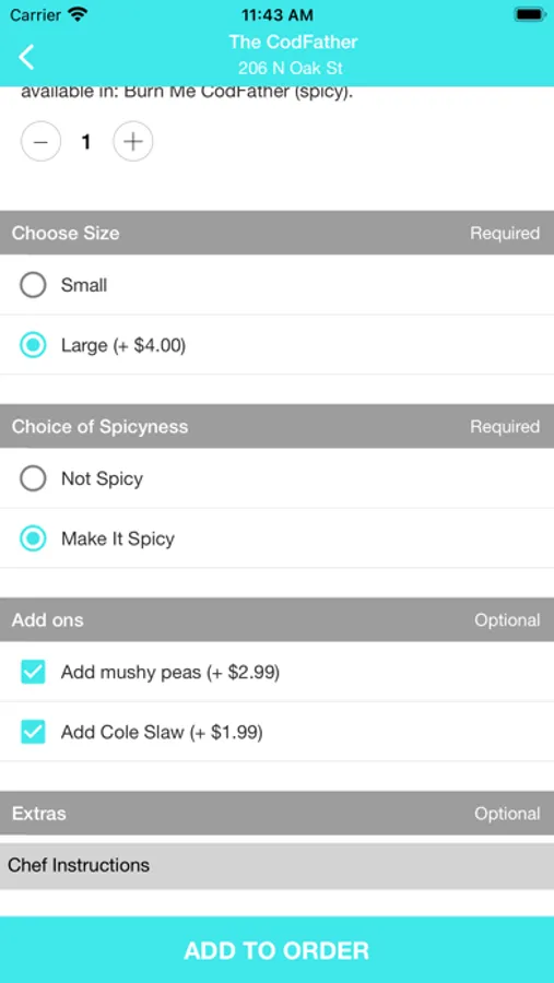 Welcome to The CodFather. Our menu features Fish & Chips, Southside Chicago John Style Beer Battered Cod Sandwich, Sweet Tea, and more! Don't forget to try our Beer Battered Cod Sandwich and the Beer Battered Gulf Shrimp! Find us at North Oak Street. Order online for carryout or delivery!