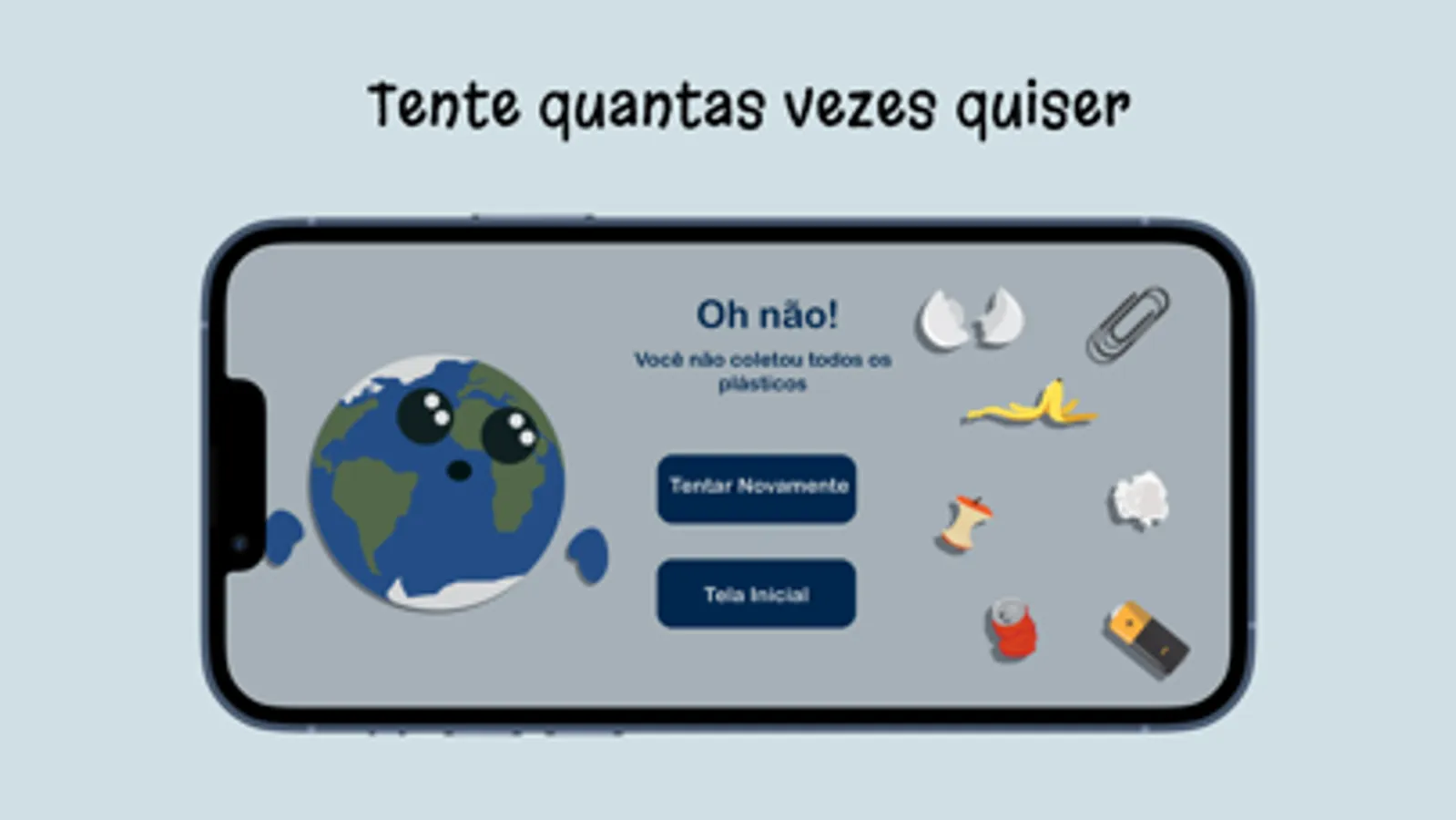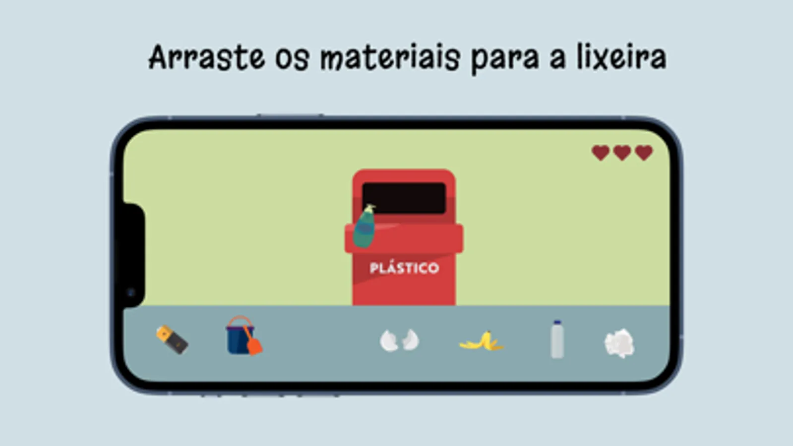Durante o jogo a criança poderá encontrar lixos que se adequam a lixeira que ela vê e lixos não adequados, ao acertar ou errar qual lixo vai para a lixeira ela receberá de forma visual e sonora um resultado para que seja entendido qual lixo deve ser adequado para a lixeira.