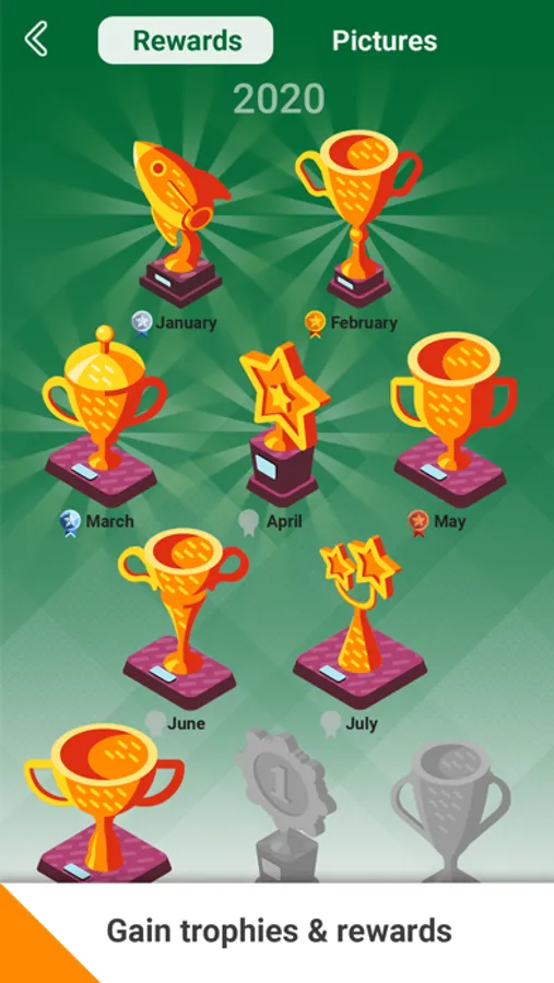 Daily challenges with rewards: win trophy cups and unlock new backgrounds