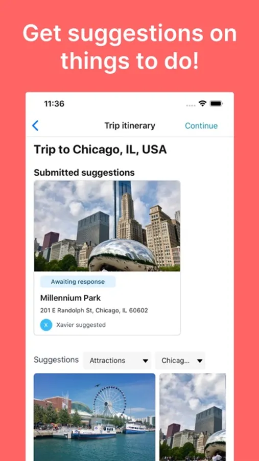3) Get suggestions on amazing highly rated suggestions for your trip and even allow your friends to add suggestions.