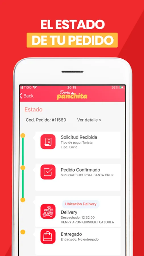 - Seguimiento de su pedido desde que sale de la sucursal hasta su domicilio.
