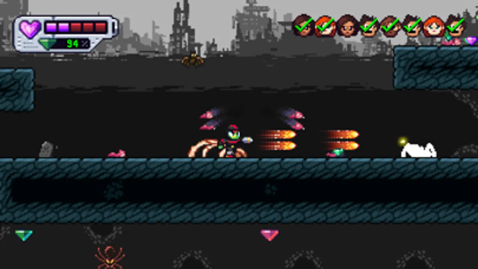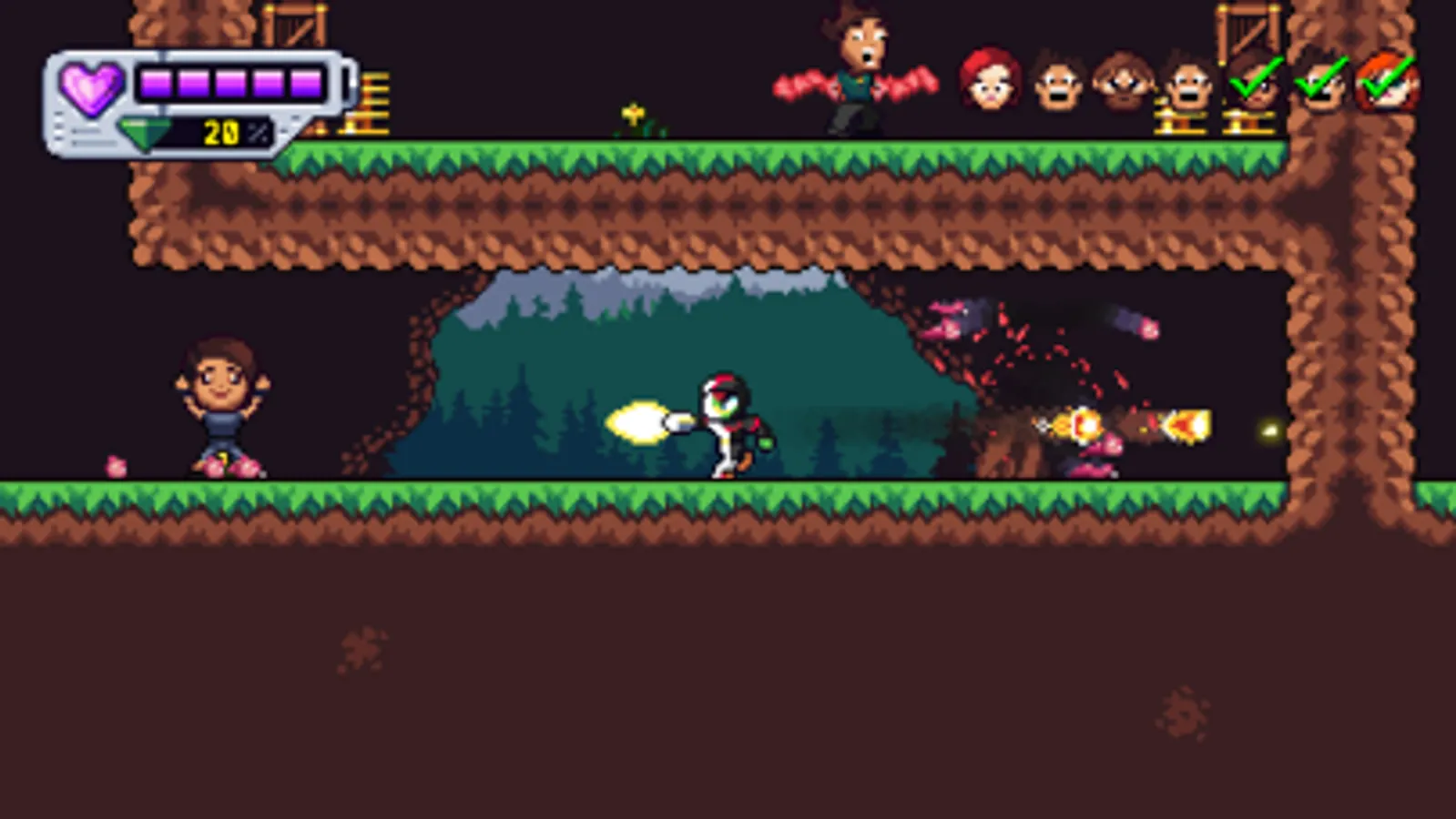 Run, shoot, swim, dash, and fly. Rescue the innocent. Fight mighty bosses. Earn powerful upgrades.