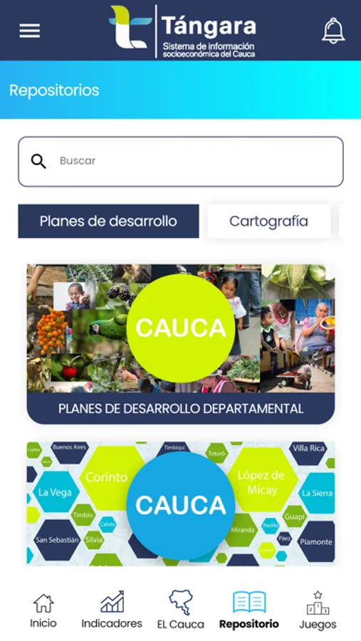 Tángara es el Sistema de Información Socioeconómica del Cauca, administrada desde la Oficina Asesora de Planeación del Departamento, la cual busca convertirse en un instrumento de consulta de datos sociales, económicos y ambientales disponibles para todos los usuarios, principalmente para el sector académico y de investigación, pretende brindar datos altamente estructurados para facilitar procesos de formulación de proyectos y una ventana de consulta para ver el estado de avance del departamento bajo diversas dimensiones. El Sistema cuenta con funcionalidades, las cuales buscan presentar la información de forma organizada y que contribuya a la toma de decisiones, focalización de recursos, seguimiento y control de las políticas públicas y de la ejecución del plan de desarrollo departamental.