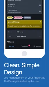 With this process service management app, you can organize jobs, record field attempts, and share updates with clients and colleagues. Includes job mapping, attempt documentation, and document access features.