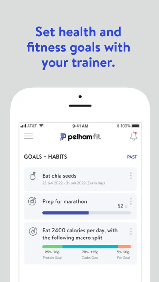 With the Pelham Fit App, you can start tracking your workouts and meals, measuring results, and achieving your fitness goals, all with the help of your personal trainer.