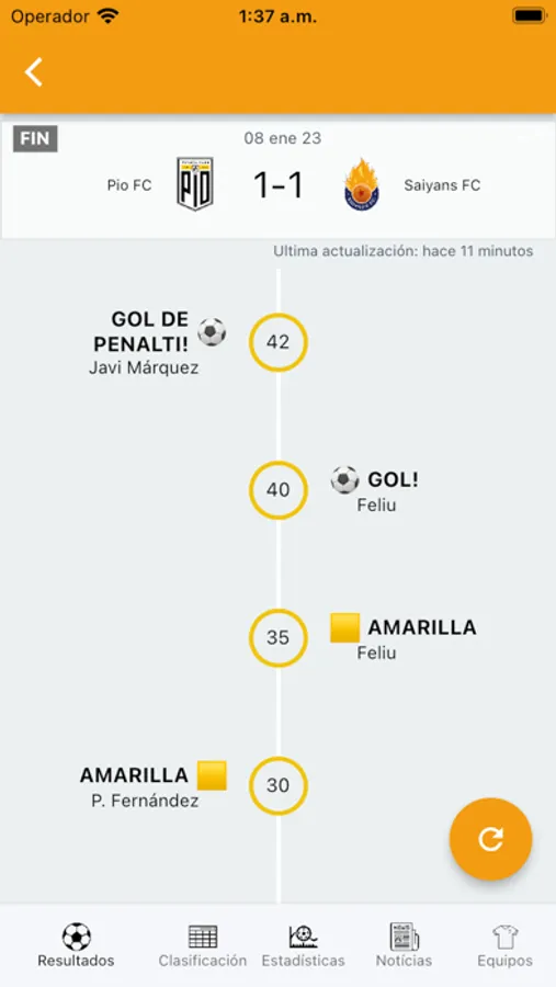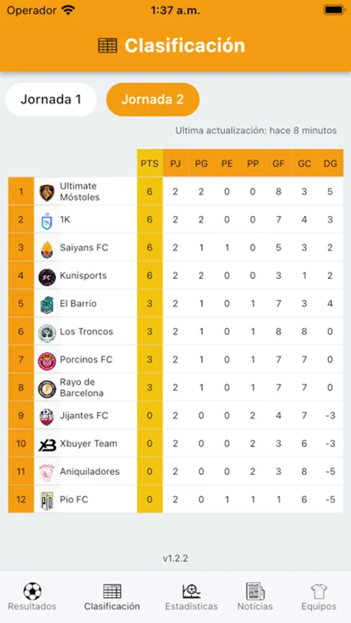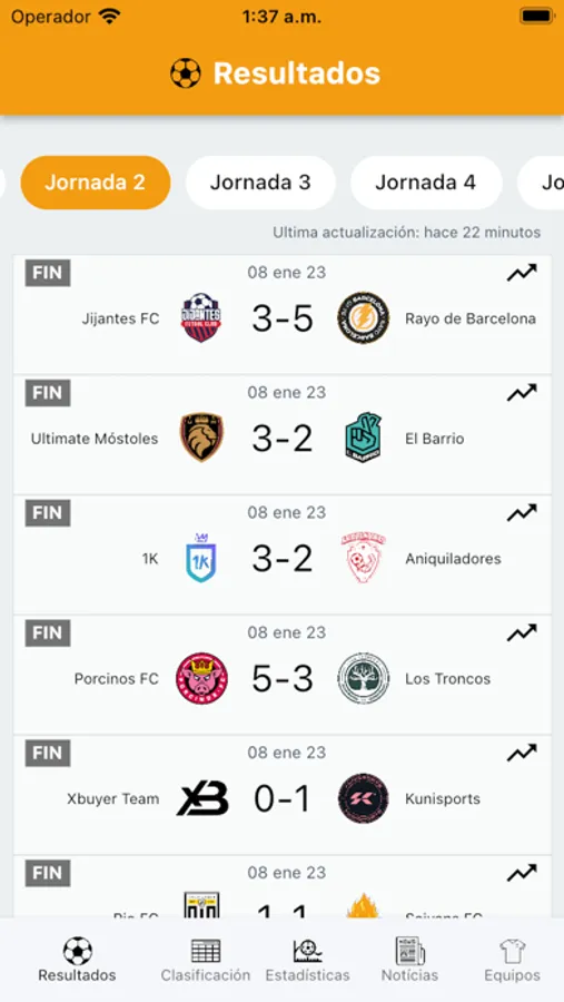 - Jornadas: Calendario deportivo de todas las jornadas, horarios y resultados en tiempo real
