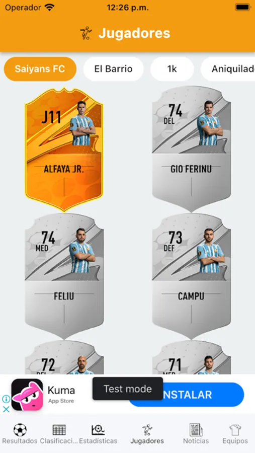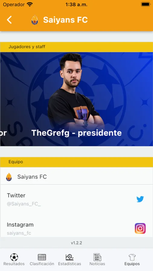 - Equipos: Consulta la información de cada uno de los equipos, sus redes sociales, sus jugadores y personaliza tu experiencia en función de tus preferencias.