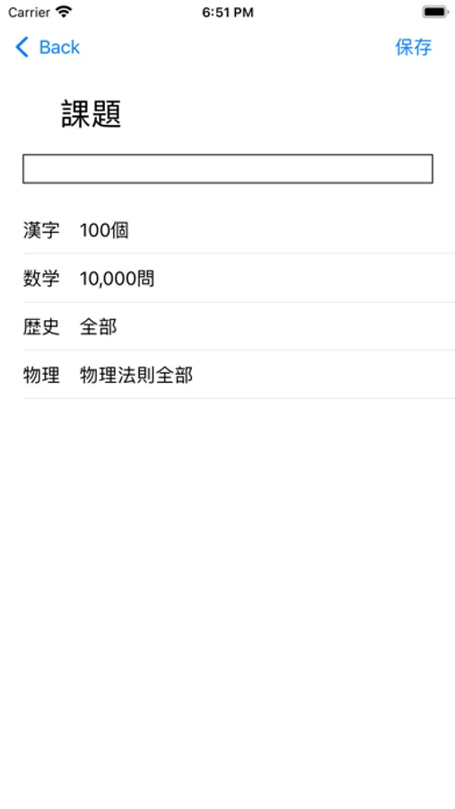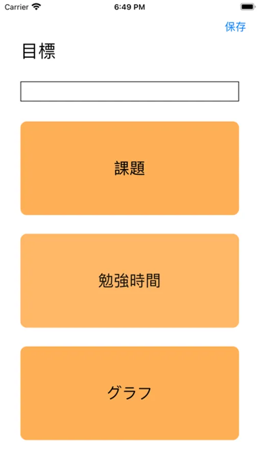 機能は4つ、勉強の目標、課題の設定、勉強時間のカウントダウンタイマー、今までの点数をグラフ化する事が出来ます